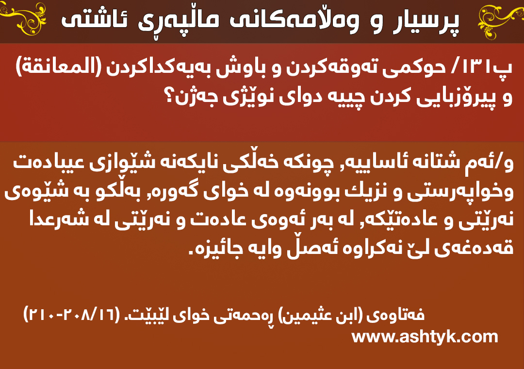 له فهتواكانی شێخ (ابن عثیمین) ڕەحمەتی خوای لێبێت. (16/208-210)