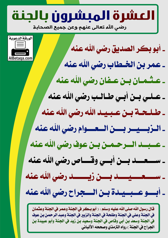 العشرة المبشرون بالجنة (ئەو هاوەڵەی كە موژدەی بەهەشتیان پێ دراوە)