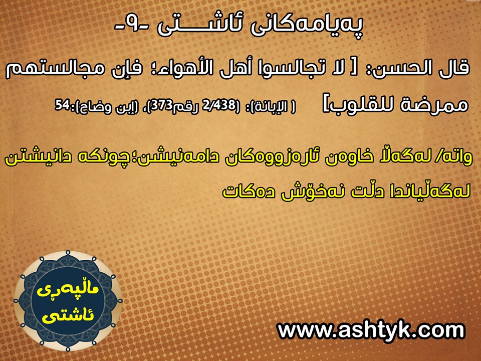 واتە/ لەگەڵا خاوەن ئارەزووەكان دامەنیشن؛ چونك دانیشتن لەگەڵیاندا دڵا نەخۆش دەكات.