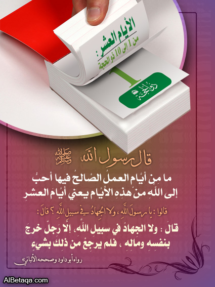 ((ما من أيام العمل الصالح فيها أحب إلى الله من هذه الأيام يعني أيام العشر، قالوا : يا رسول الله ، ولا الجهاد في سبيل الله ؟ قال : ولا الجهاد في سبيل الله، إلا رجل خرج بنفسه وماله ، فلم يرجع من ذلك بشيء))